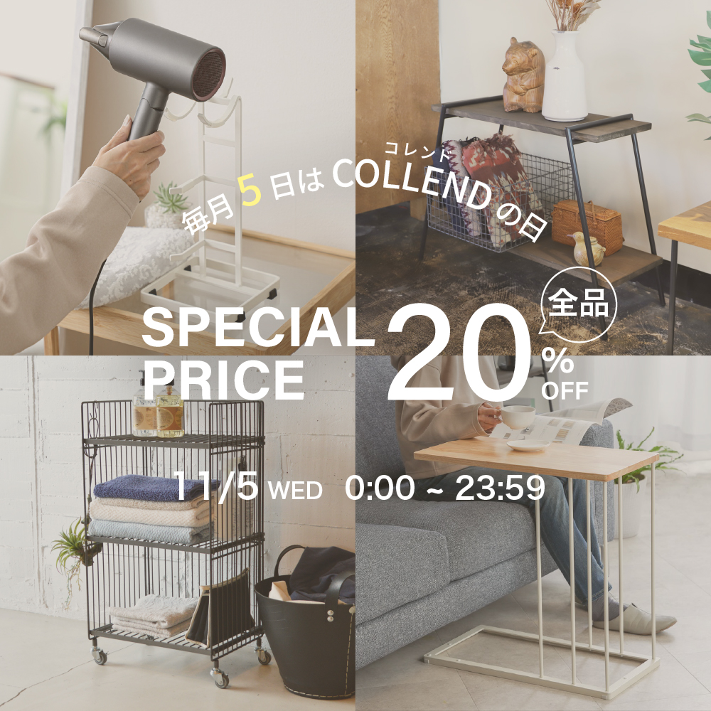 【開催中】【毎月5日はCOLLENDの日】11/5は全品20%OFF!
